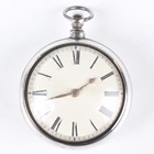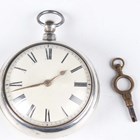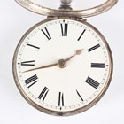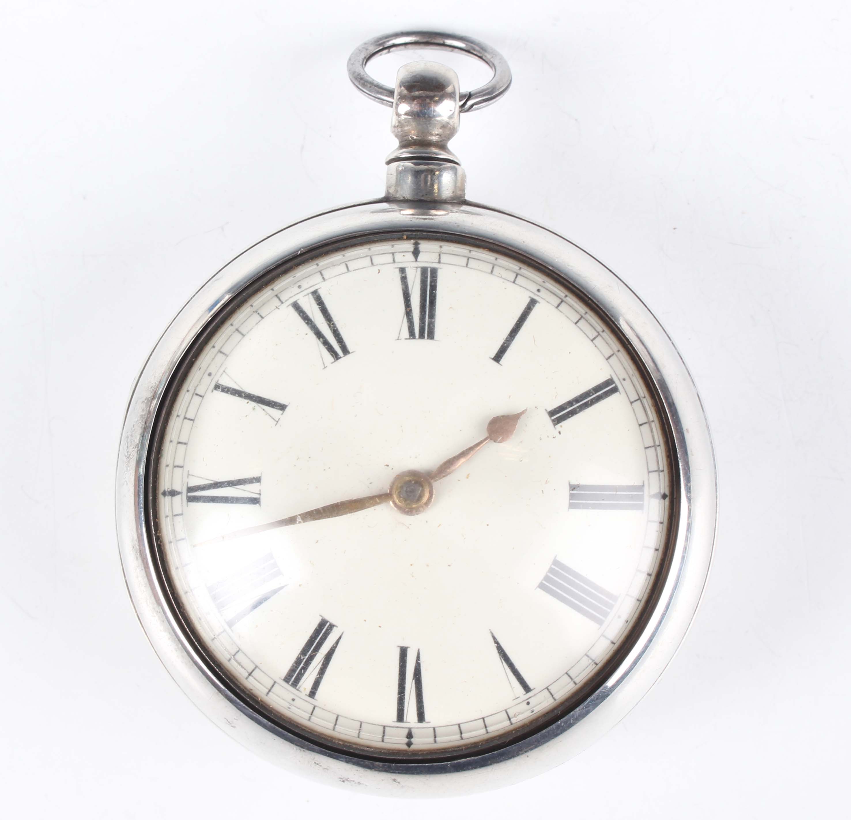 A William IV silver pair cased keywind pocket watch, the gilt fusee movement with verge escapement and pierced and engraved balance cock, the backplate detailed 'Davey Lewes No. 2669', the white enamelled dial with black Roman hour numerals and gilt hands, London 1834, outer case diameter 5.6cm, total weight 167.8g, with winding key. Note: William Davey is a recorded Sussex watchmaker, working from his High Street address in Lewes.