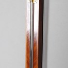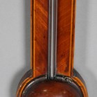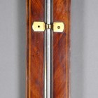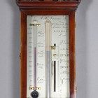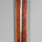 A George III mahogany cased stick barometer, the silvered dial with vernier scale and alcohol thermometer and inscribed 'A.P. Tarone & Co, No. 7 Grevill StrT, Leather Lane, London', the line inlaid case with breakarch pediment above a glazed door, mercury tube and turned cistern cover, height 96cm.