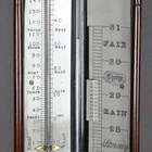 A Victorian rosewood cased stick barometer, the arched ivorine dial with vernier scale, the arched case with concealed mercury tube and turned cistern cover, height 92cm.