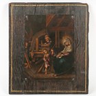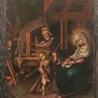 Italian School (18th/19th century) - The Holy Family in a workshop setting, oil on metal, 29cm x 22cm, mounted on an oak panel.