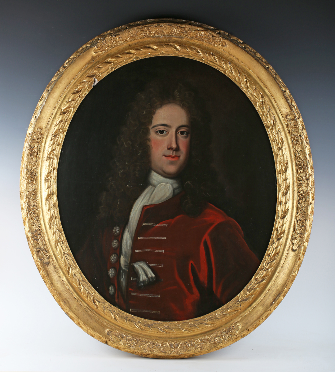 Circle of Sir Godfrey Kneller (German 1646-1723) - Portrait of a gentleman, oil on canvas, oval, 76cm x 63cm, within a carved giltwood frame.