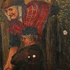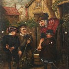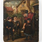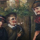 English School (19th century) - Old woman with a pail at a cottage door with three young boys, oil on board, 30.5cm x 25.5cm, unframed.
