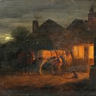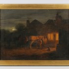 George Shalders (British 1826-1873) - The smithy: a blacksmith shoeing a horse, oil on canvas, indistinctly signed lower left, 32.5cm x 43cm, within a plain gilt slip.