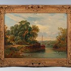 John Syer (British 1815-1885) - ‘On the Avon near Bristol’, oil on canvas, signed lower left, 40cm x 55.5cm, within a swept gilt composition frame. Provenance: with Frost & Reed.