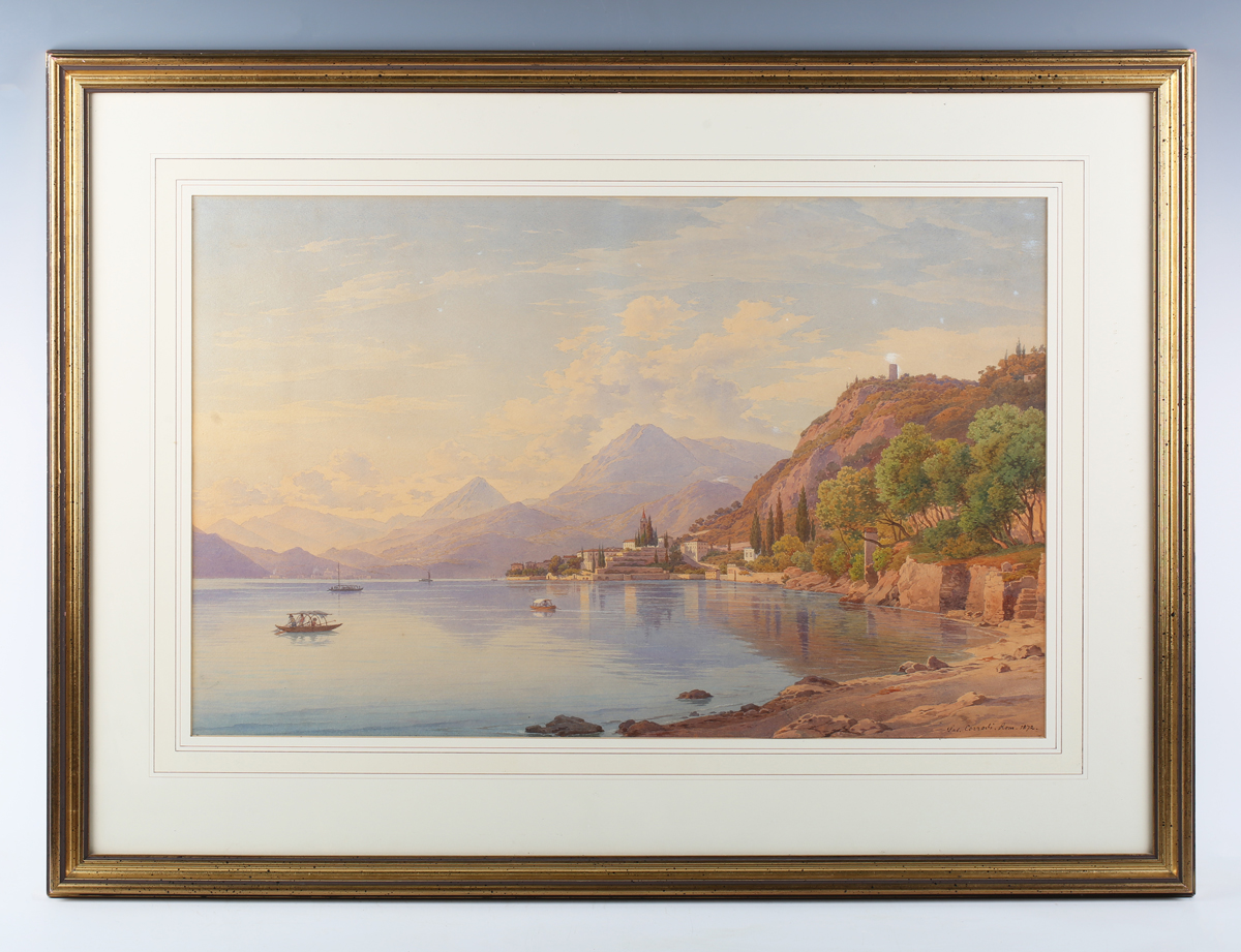 Salomon Corrodi (Swiss 1810-1892) - View of Varenna on Lake Como, watercolour, signed and dated 1872 lower right, 37.5cm x 59.5cm, within a gilt frame.