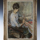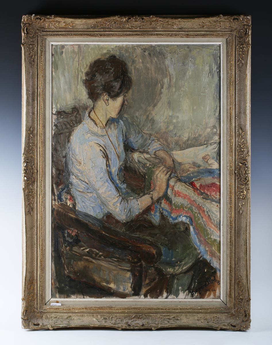 Margaret Milnes (British 1908-1998) - ‘Ann and Catherine’, oil on canvas, signed and dated Jan ’64 lower right, Royal Academy of Arts label verso, 91.5cm x 61cm, within a swept composition frame.