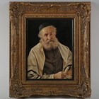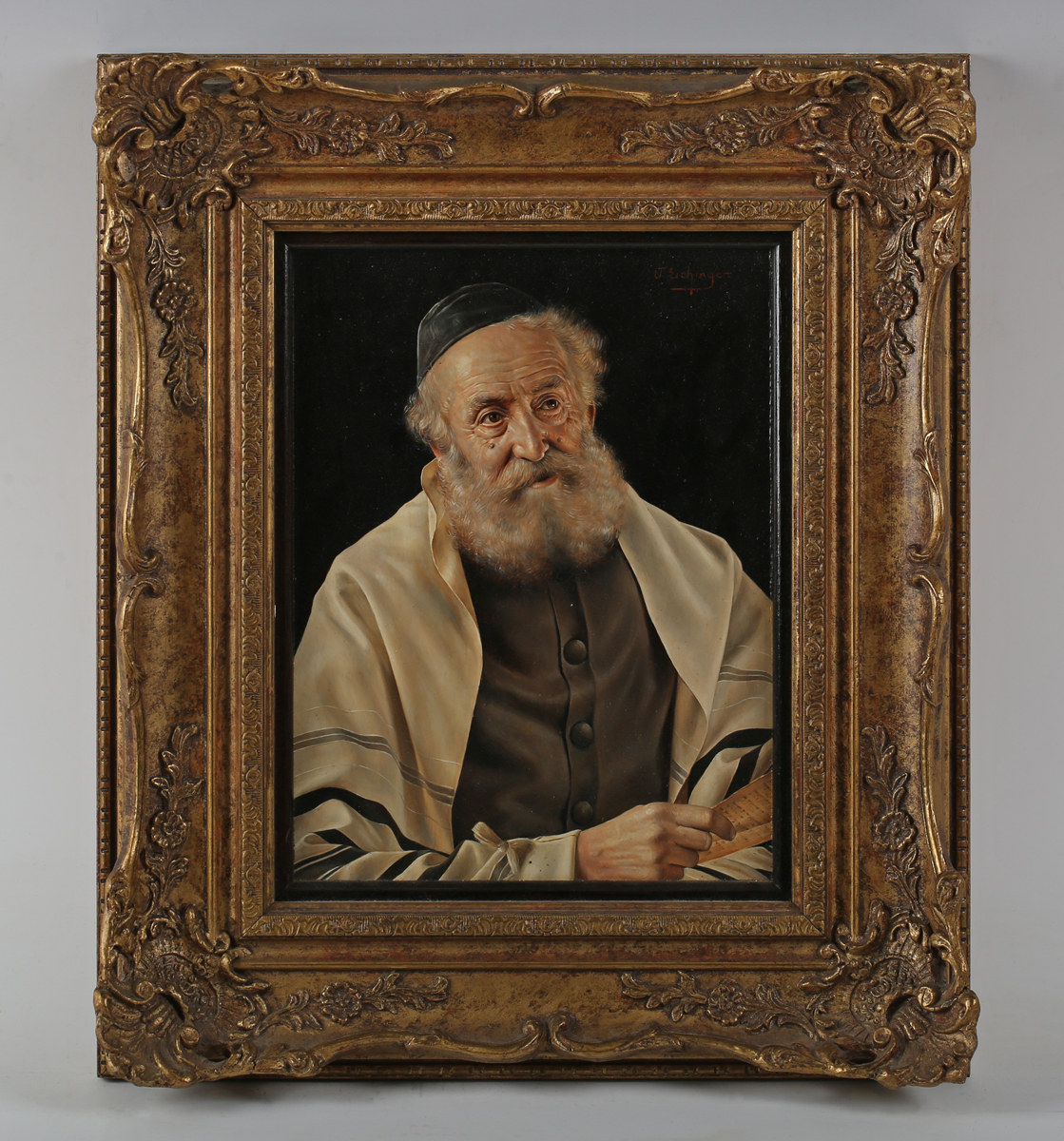 Otto Eichinger (Austrian 1922-2004) - ‘Wisdom and Sagacity’: portraits of rabbis, a pair, oil on board, both signed, one upper left, the other upper right, each 27cm x 20cm, within swept gilt composition frames (2). Provenance: Frost & Reed.