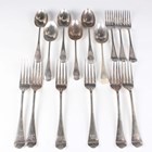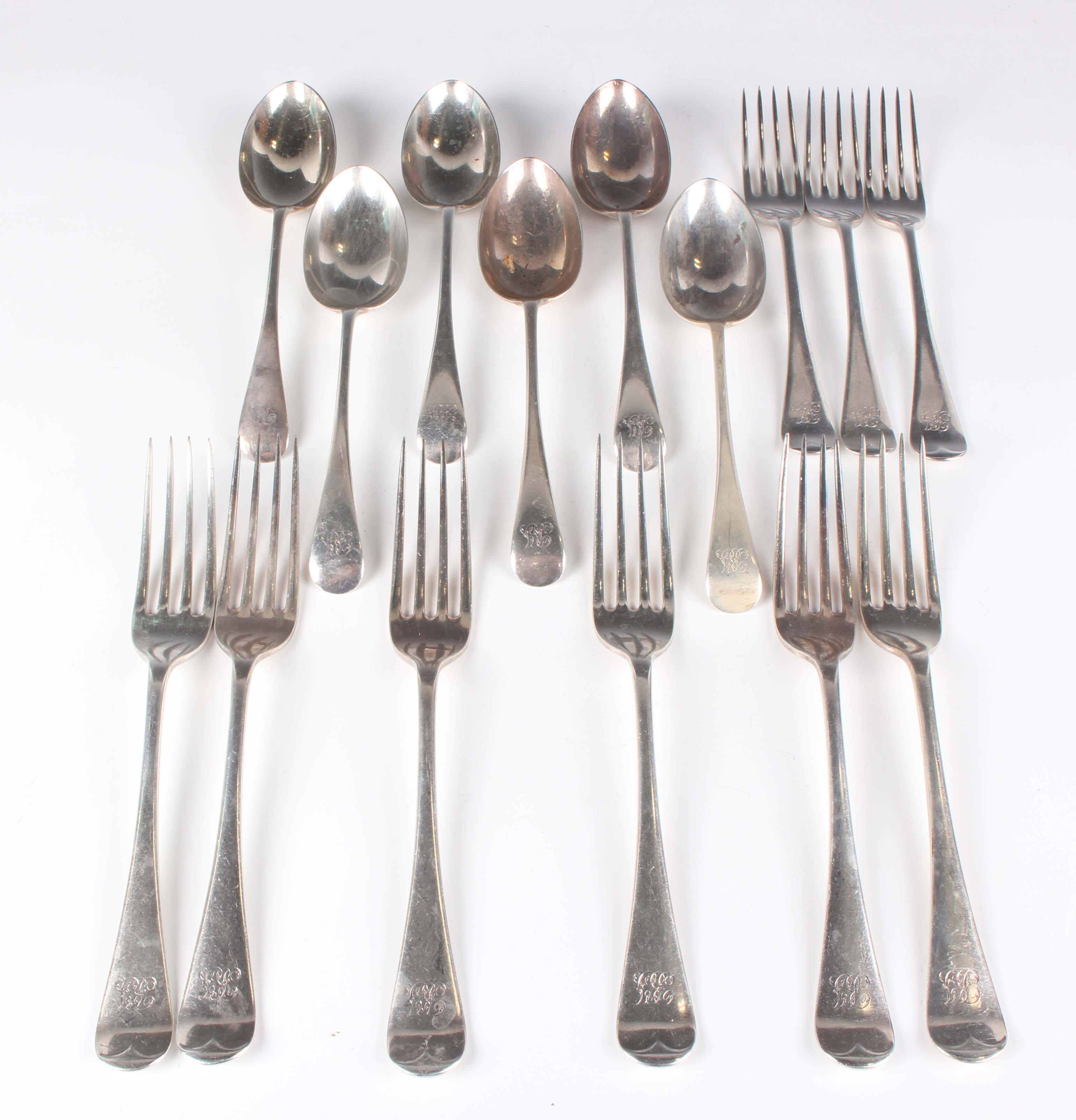 A late Victorian part canteen of silver Old English pattern cutlery, comprising six table forks, six dessert spoons and three dessert forks, Sheffield 1900 by RCO, total weight 902.8g, length of table fork 20.3cm.