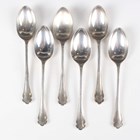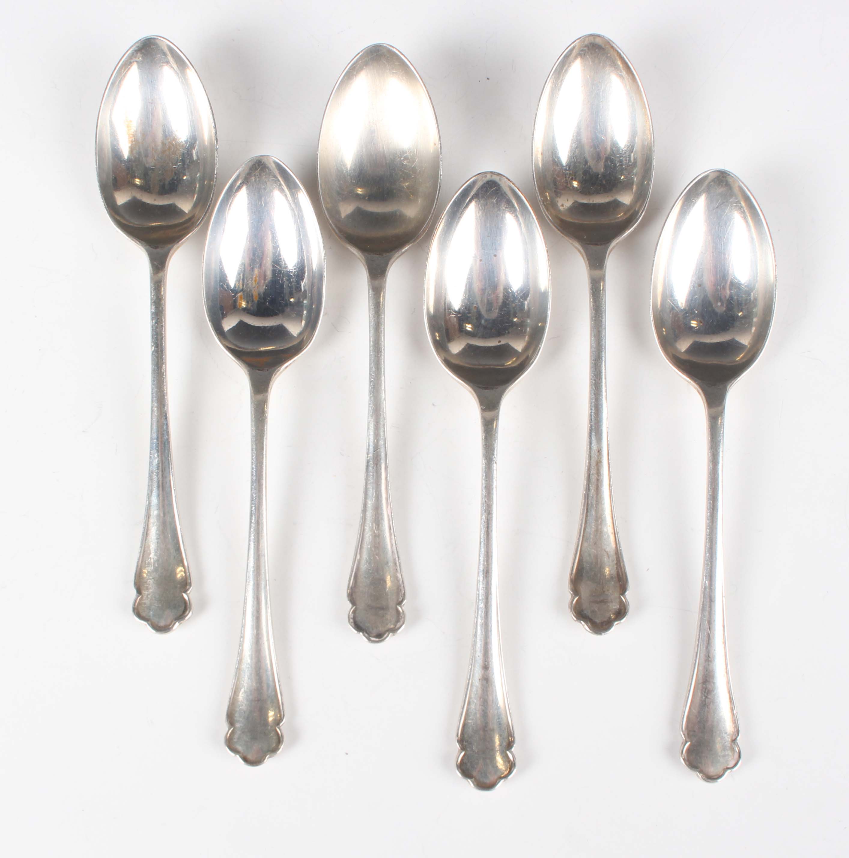 A set of six George V silver teaspoons, Sheffield 1932 and 1933 by Atkin Brothers, total weight 133.5g, length 12.2cm.