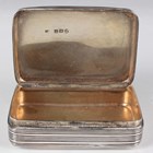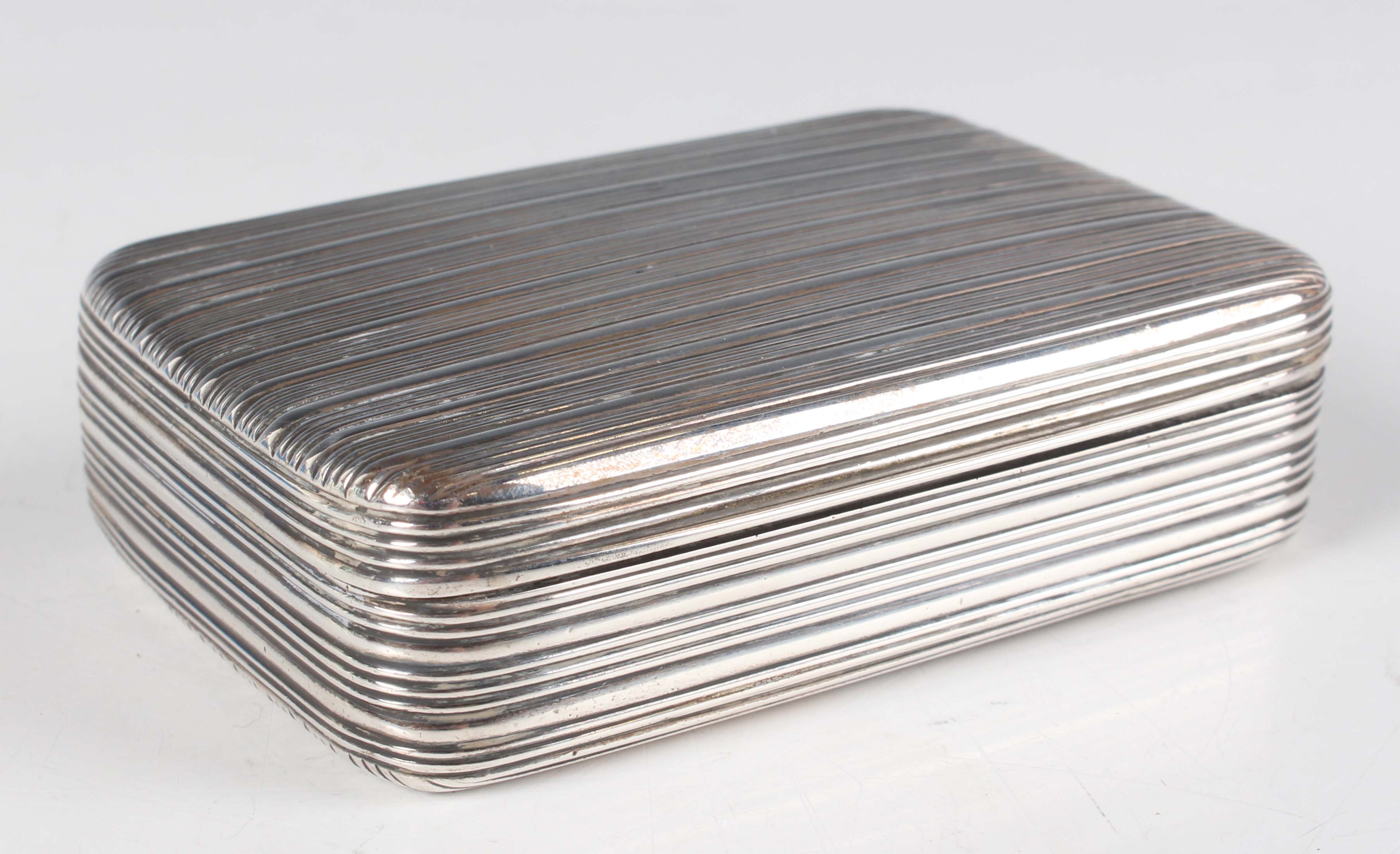 A George III silver rectangular snuff box with banded decoration, London 1810 by Joseph Ash I, weight 117g, length 8cm.