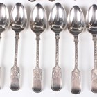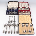 A set of six Edwardian silver engraved Old English pattern teaspoons, Sheffield 1903 and 1905 by Cooper Brothers & Sons Ltd, and a group of other silver tea and coffee spoons, various dates and makers, total weight 339g, together with a pair of Indian colonial silver teaspoons, each with crossed golf club and ball handles and initial terminals, comprising 'KGC' for Kodiakanal Golf Club and 'DDGC', by Hamilton & Co, Calcutta, weight 33.7g.