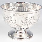 A George V silver footed bowl, the circular half-reeded body engraved with ribbon festoons, on a circular foot, Birmingham 1934 by Hawksworth Eyre & Co Ltd, weight 103.8g, height 6.4cm, diameter 8.2cm. Provenance: formerly the property of Celia Johnson and Peter Fleming and thence by descent.