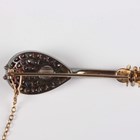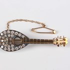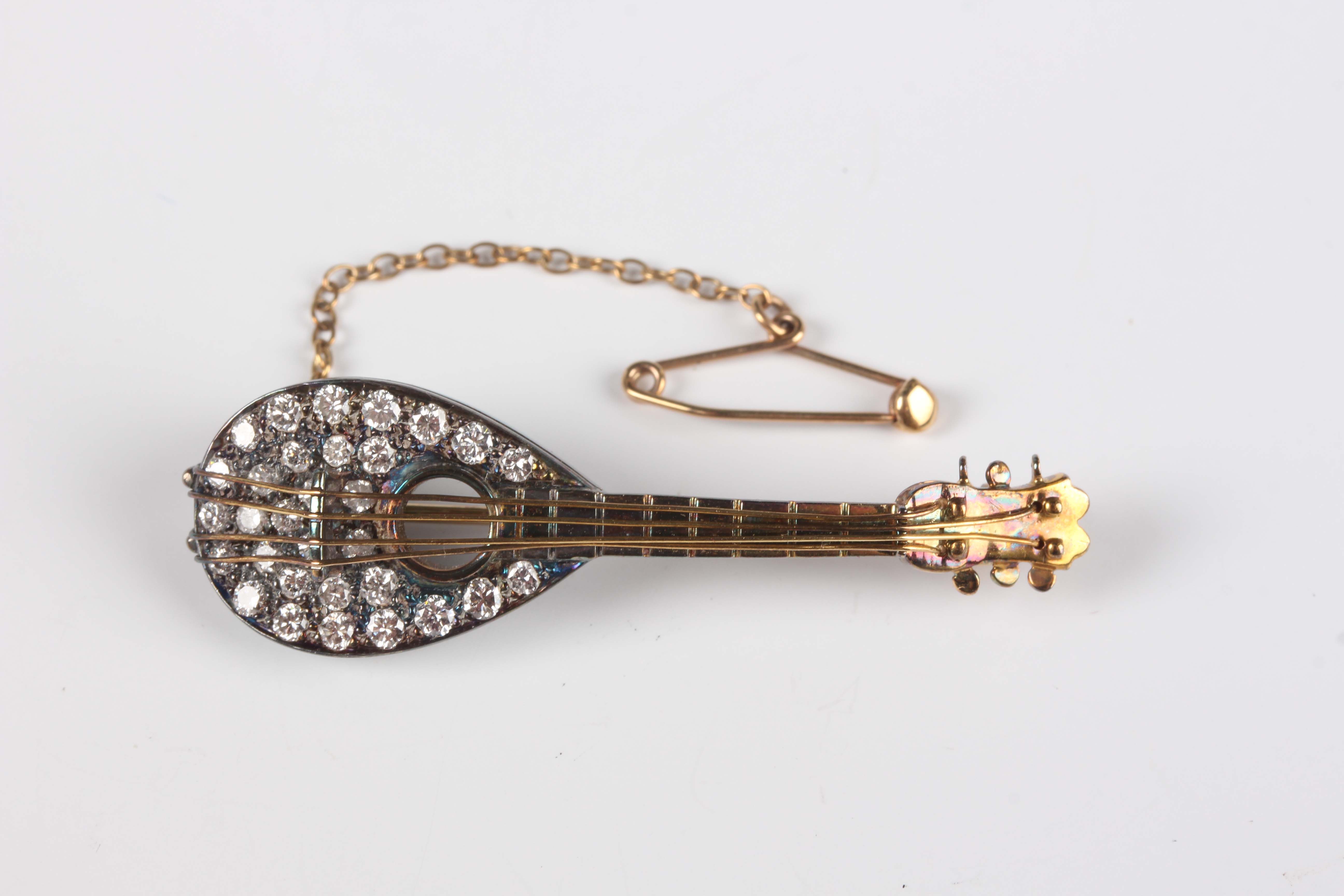 A gold, silver set and diamond brooch, designed as a mandolin, mounted with circular cut diamonds, unmarked, weight 8.5g, width 4.6cm.