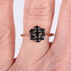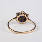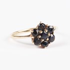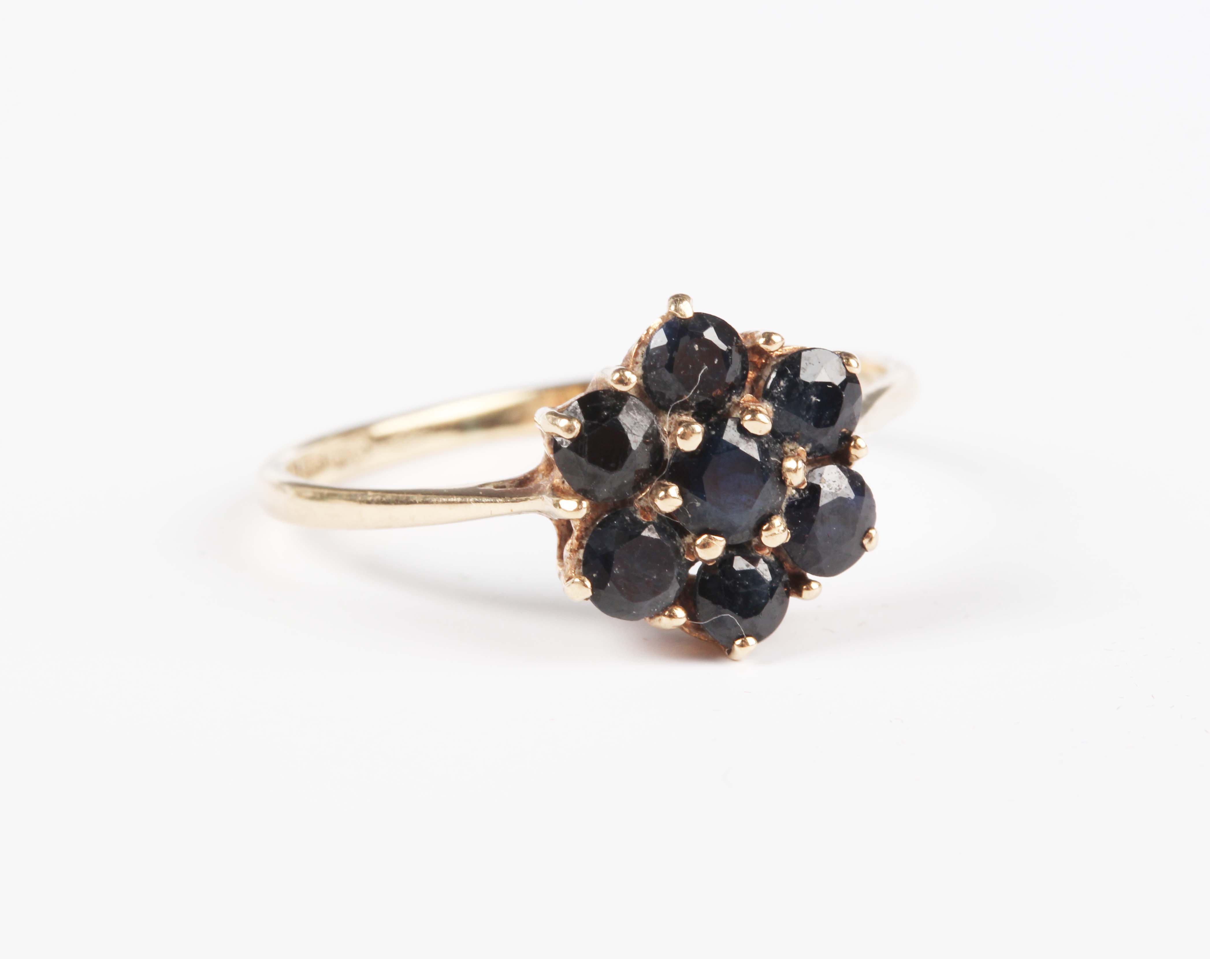 A 9ct gold and sapphire seven stone cluster ring, weight 1.5g, ring size approx M.