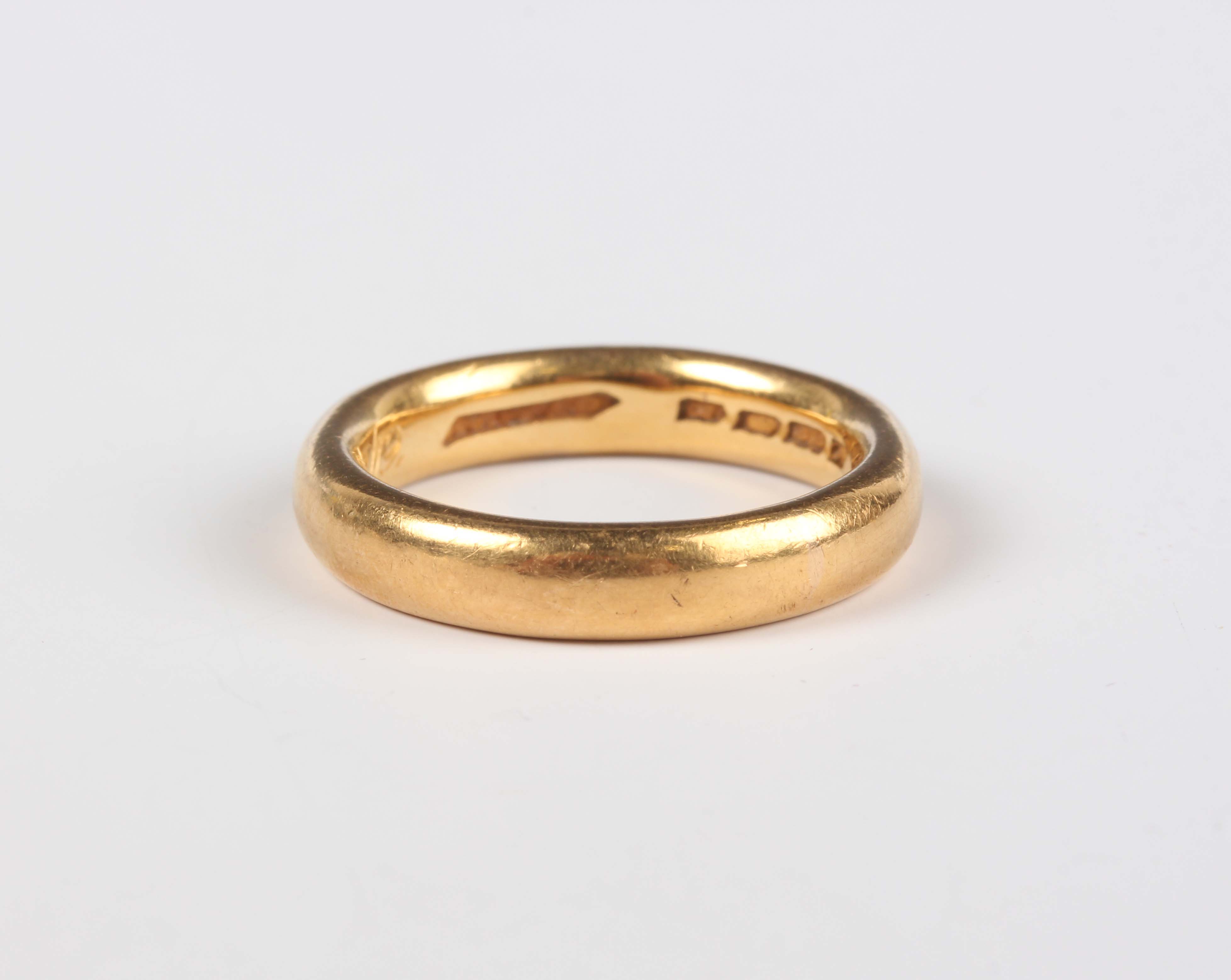 A 22ct gold wedding ring, London 1918, weight 7.6g, ring size approx K.