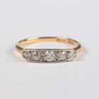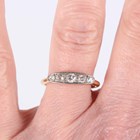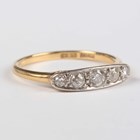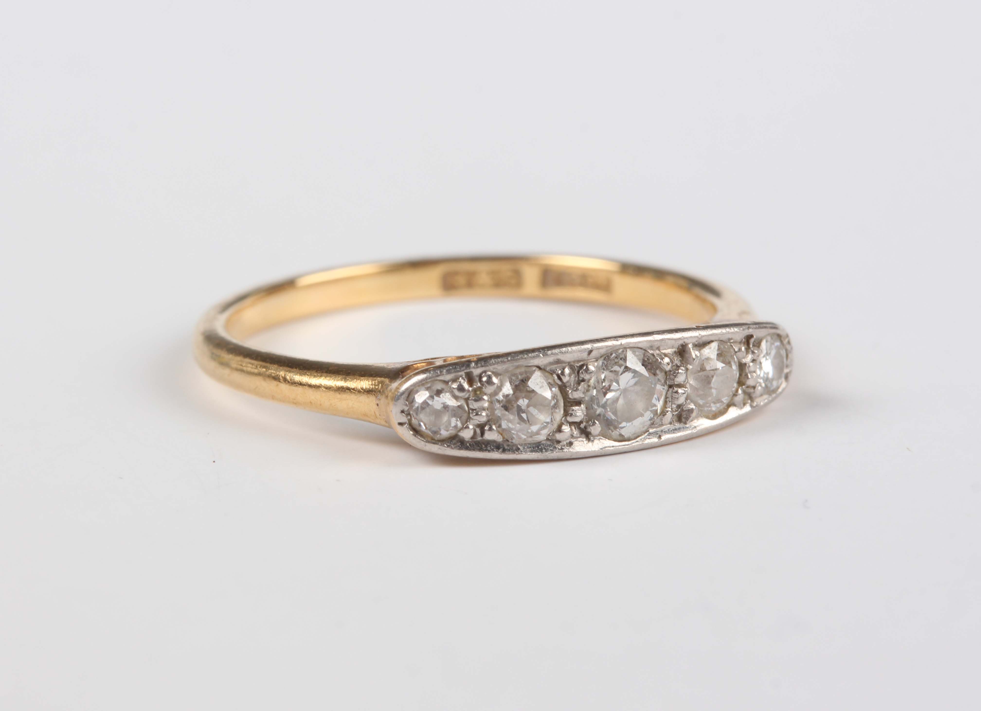 A gold and diamond five stone ring, mounted with a row of graduated old cut diamonds, detailed ‘18ct’, weight 2.3g, ring size approx O.