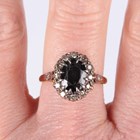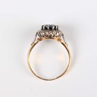 A gold, sapphire and diamond oval cluster ring, claw set with the oval cut sapphire within a surround of circular cut diamonds, indistinct marks, weight 5g, ring size approx Q.