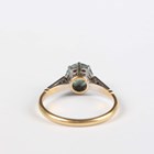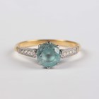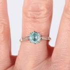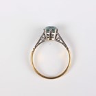 A gold ring, claw set with a circular cut blue zircon, detailed ‘18ct’, weight 2.7g, ring size approx N1/2.