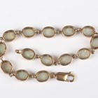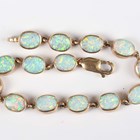 A gold and synthetic opal bracelet, mounted with a row of oval synthetic opals, on a sprung hook shaped clasp, detailed ‘375’, weight 11.6g, length 18.6cm.