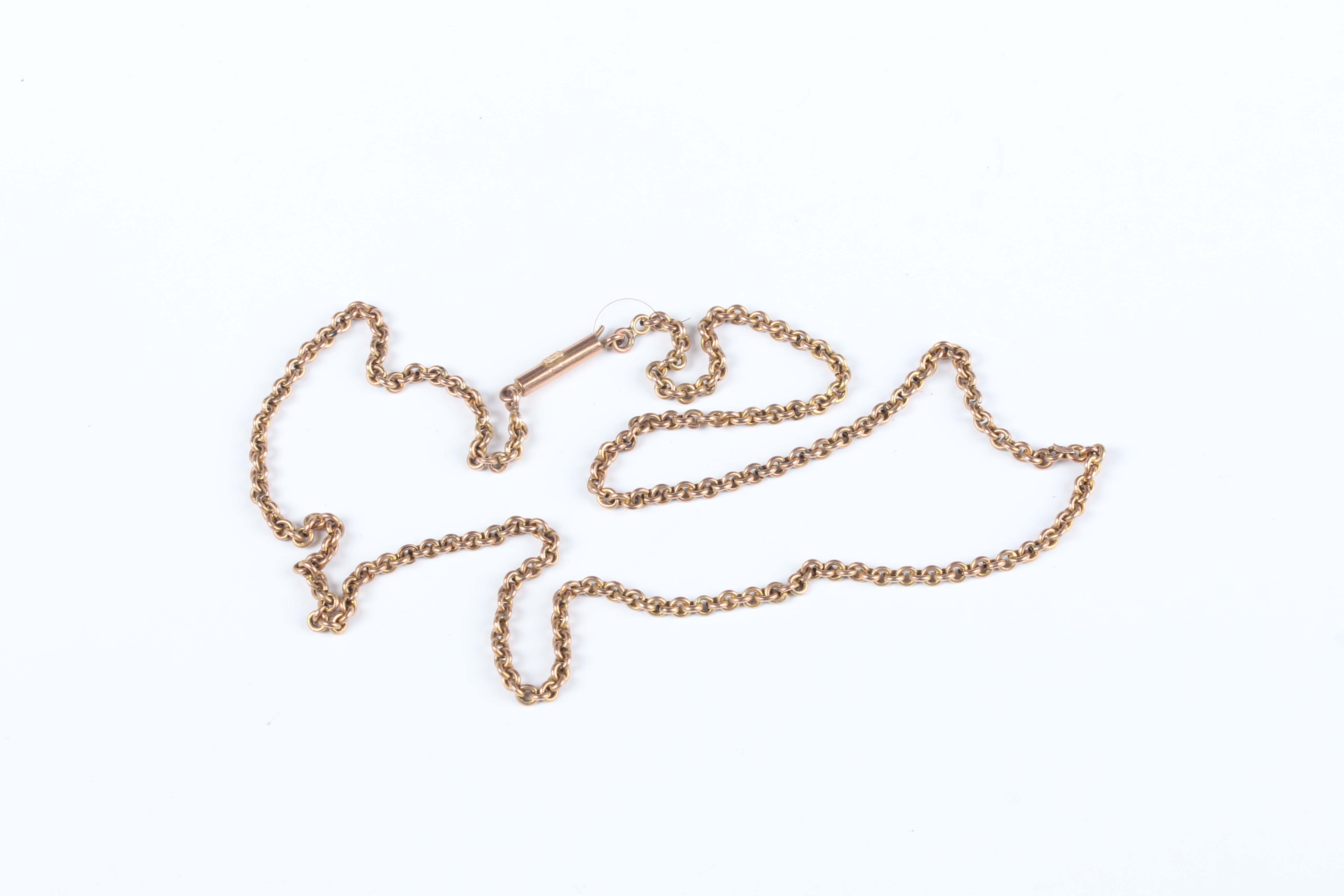 A gold circular link neckchain on a cylindrical clasp, detailed ‘9ct’, weight 4.1g, length 42.5cm.