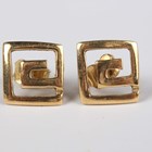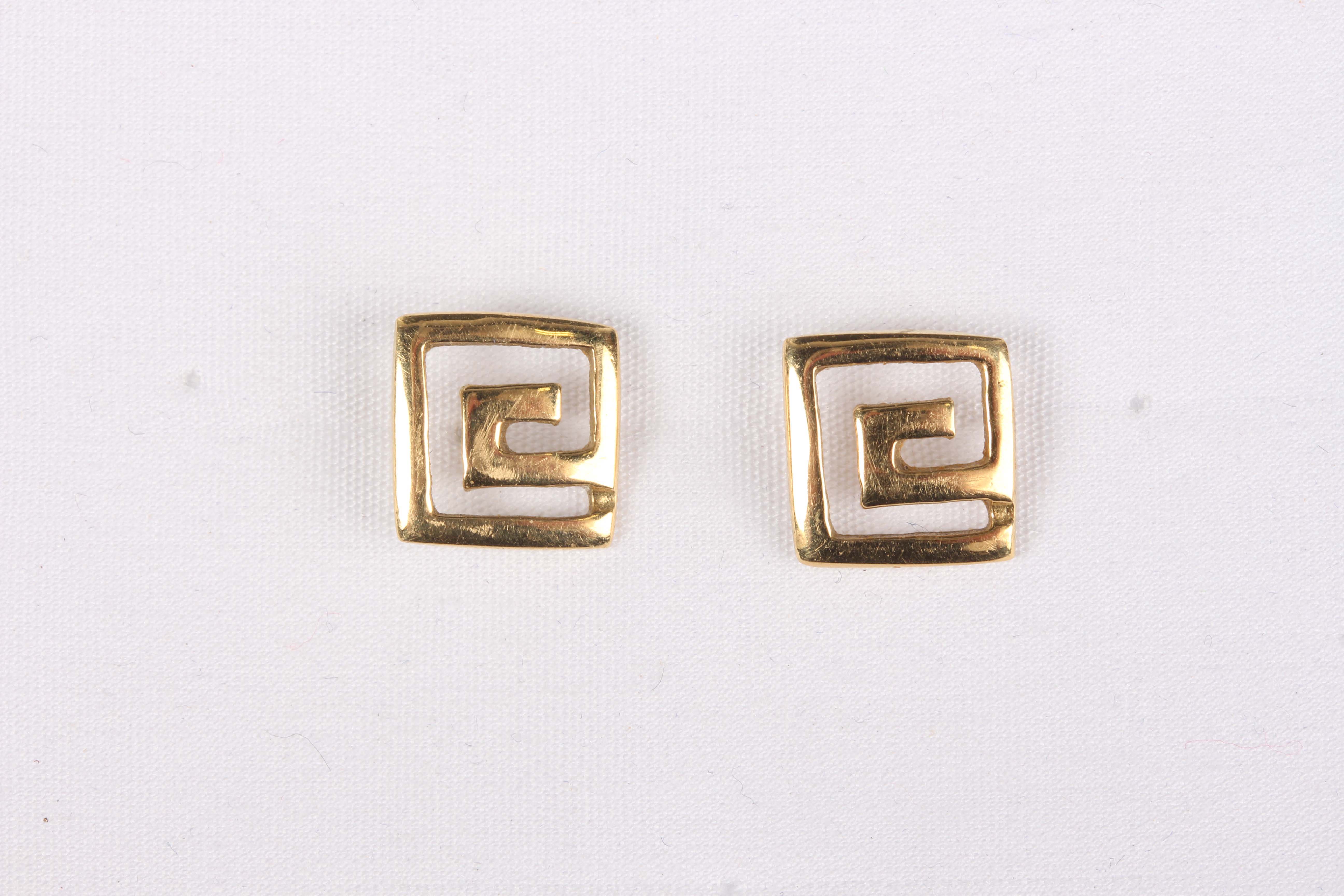 A pair of gold earstuds, each in an abstract design, detailed ‘750’, with post and butterfly fittings, the butterflies unmarked, weight excluding butterflies 2.1g, length 1cm.