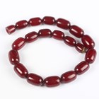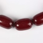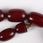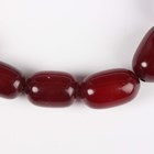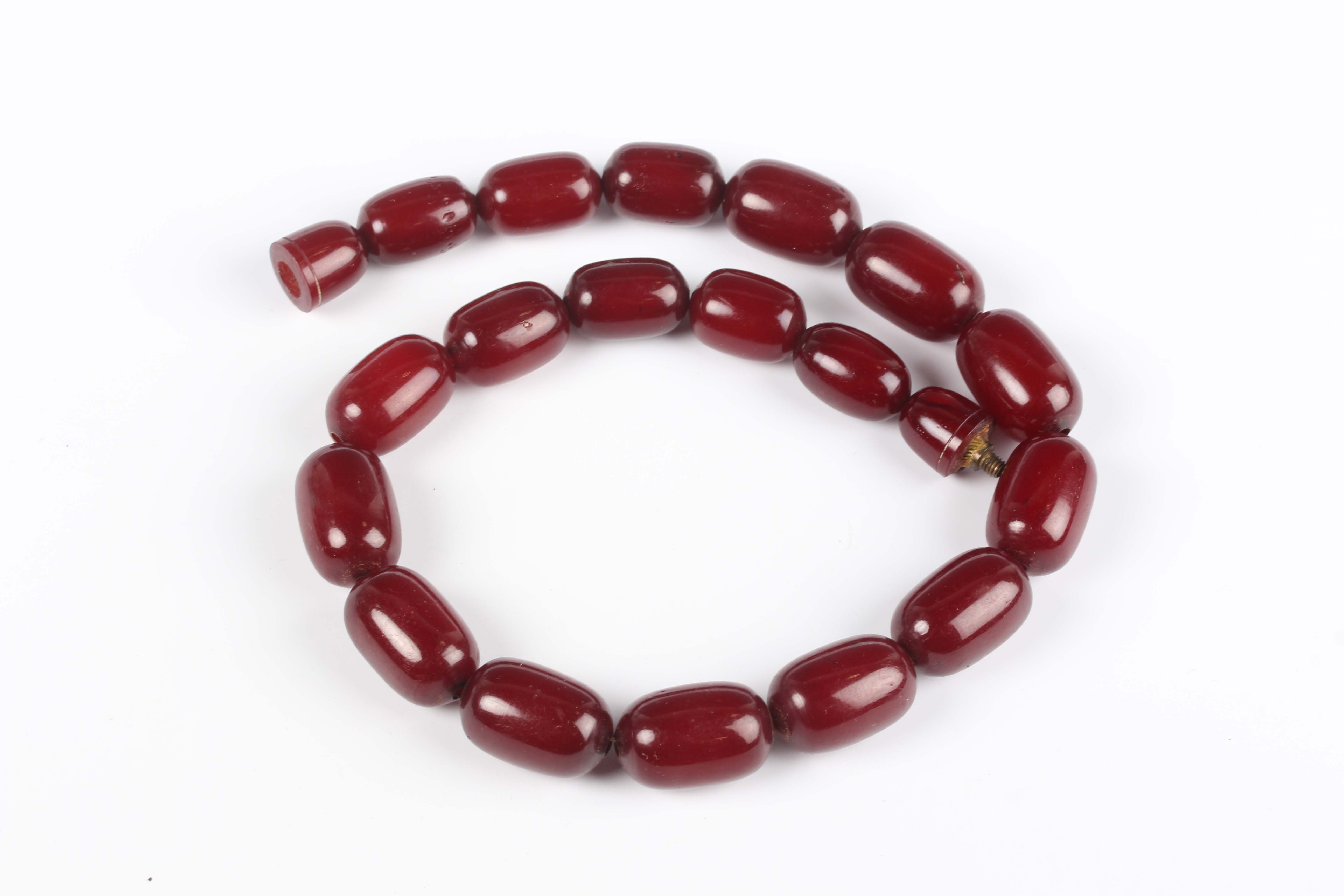A single row necklace of eighteen graduated cherry coloured imitation amber beads, possibly Bakelite, gross weight 55.8g, length 40cm, length of largest bead 2.2cm, length of smallest bead 1.8cm.