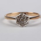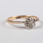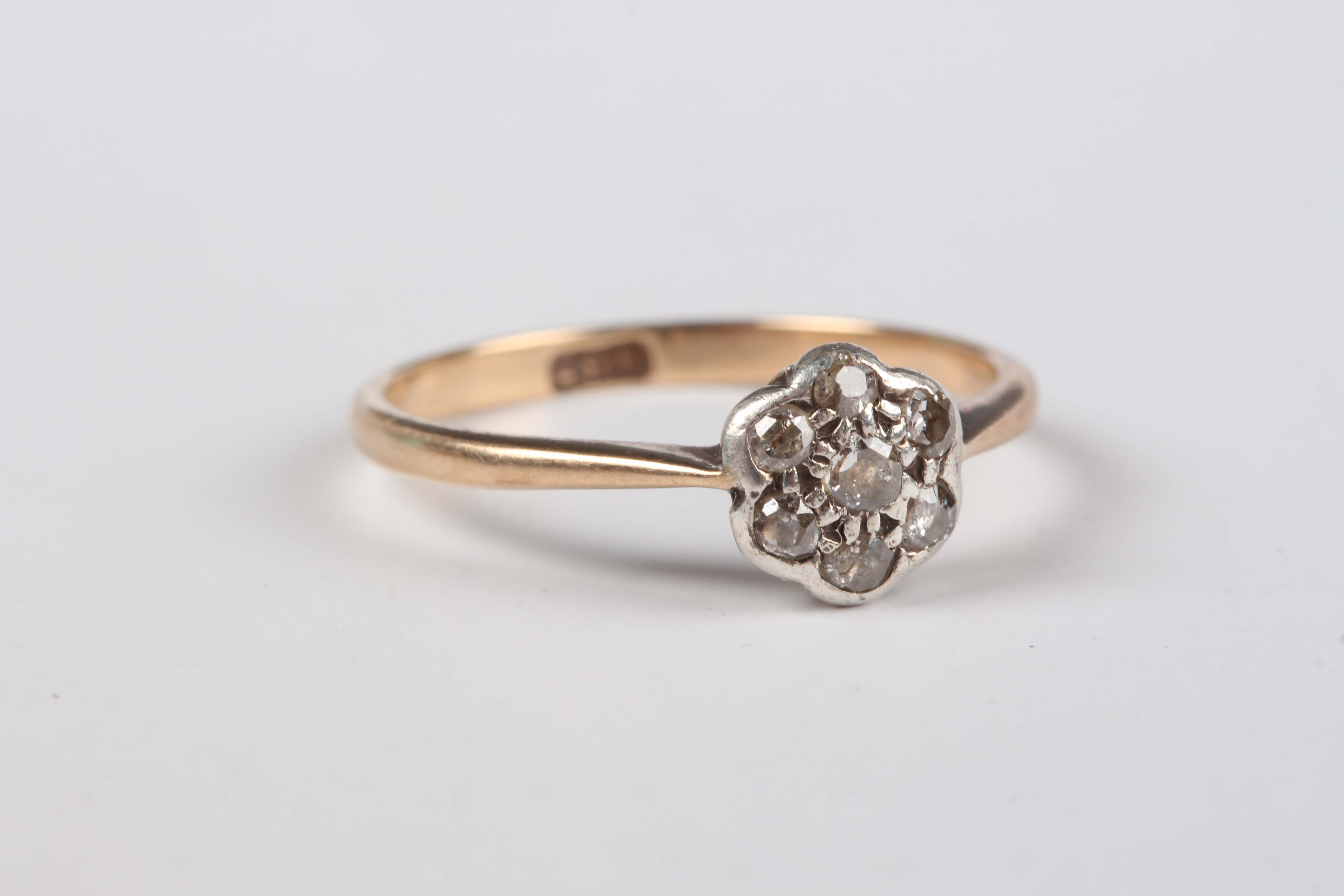 A gold and diamond seven stone cluster ring, mounted with old cut diamonds, detailed '18c', weight 1.7g, ring size approx M1/2.