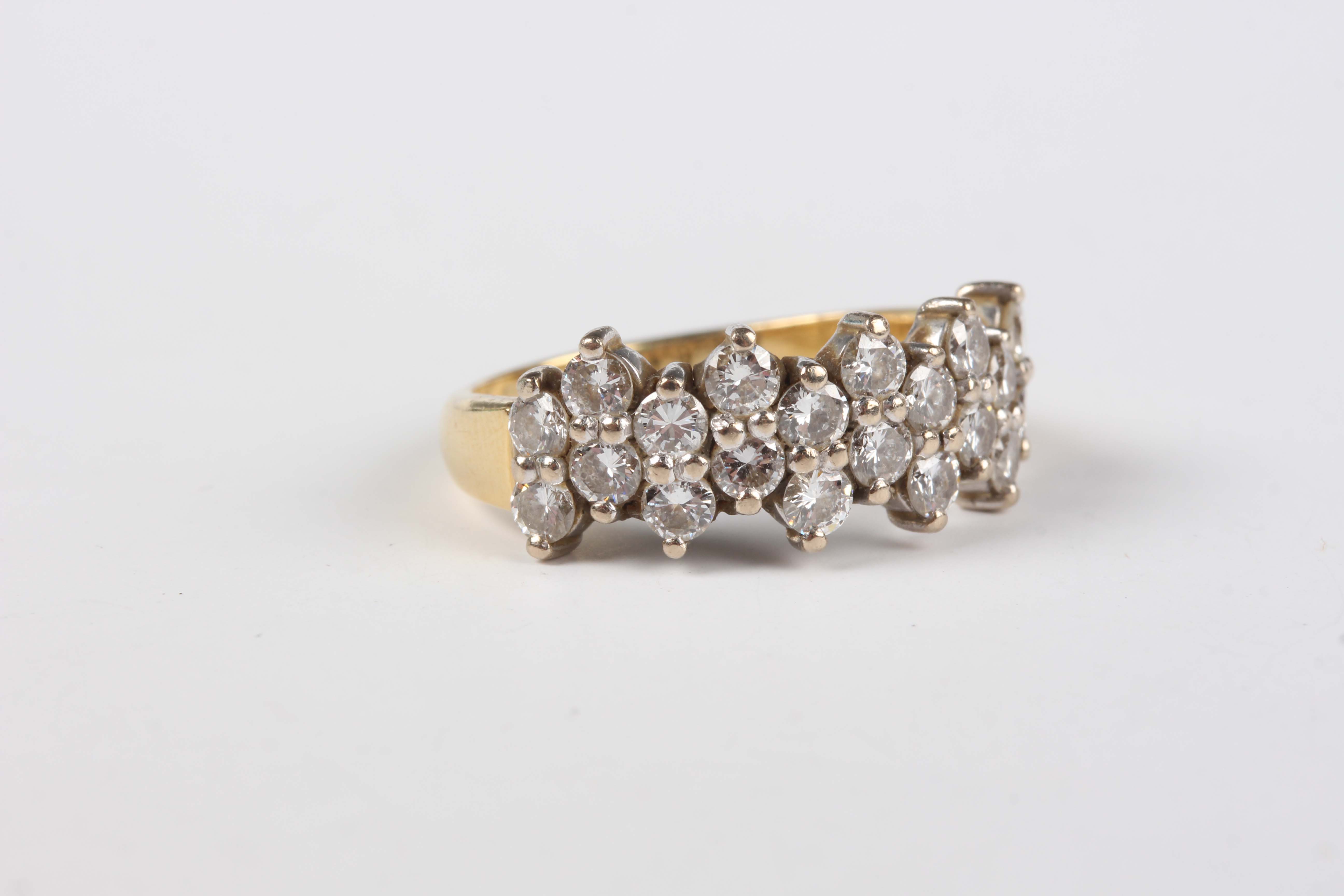 An 18ct gold and diamond ring, mounted with ten pairs of circular cut diamonds in an undulating design, weight 5.2g, ring size approx M1/2.