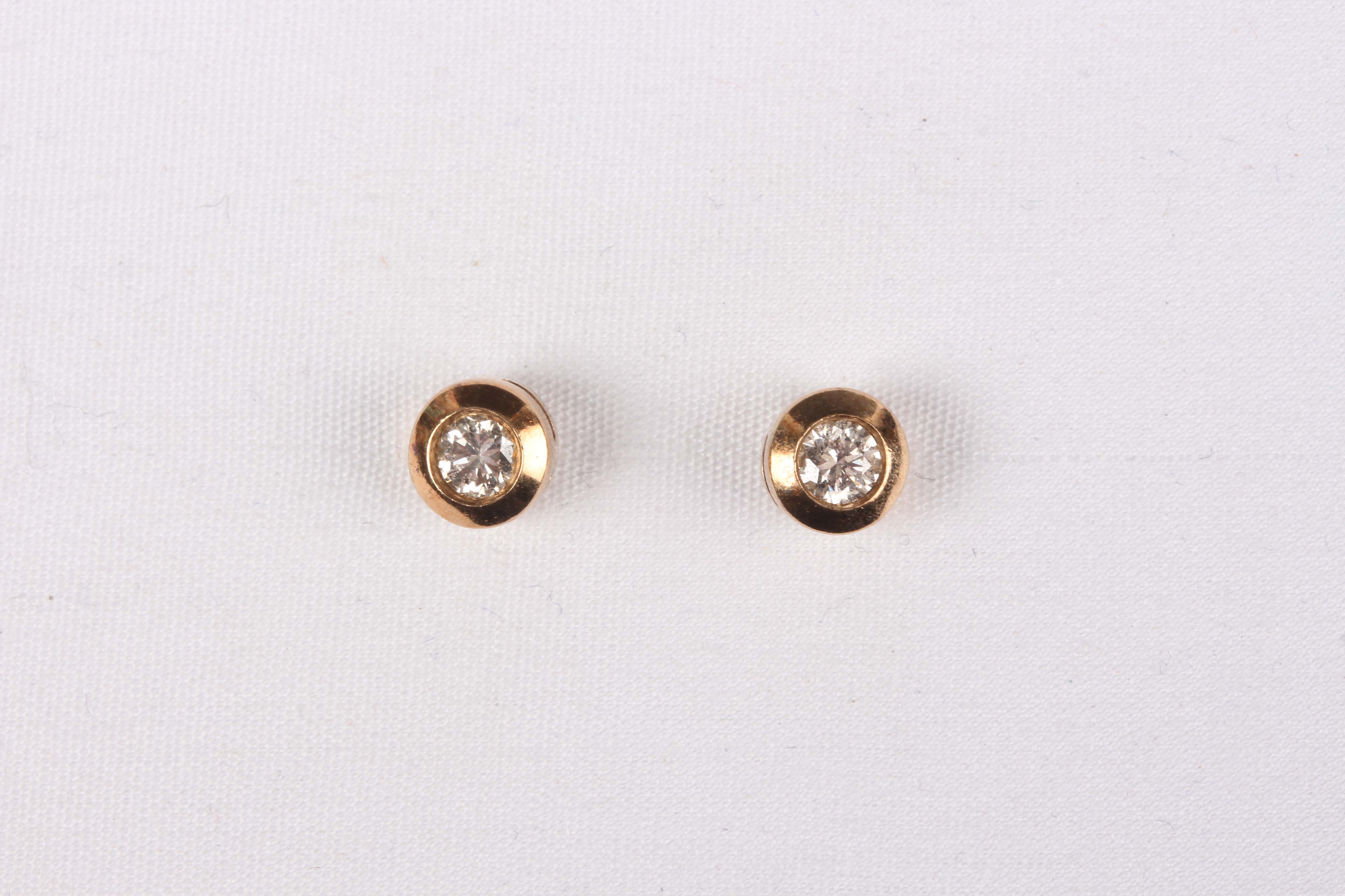 A pair of gold and diamond single stone earstuds, each mounted with a circular cut diamond, with post fittings and butterfly fittings, detailed '10K', total weight 1.6g.