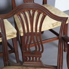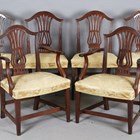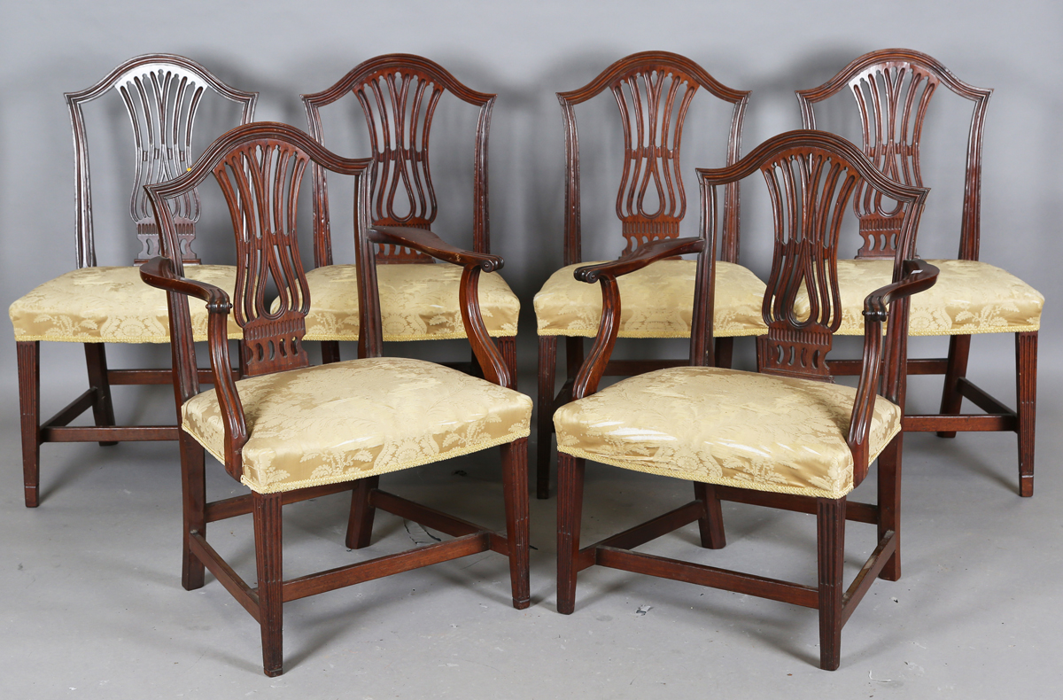 A set of six George III mahogany pierced splat back dining chairs, comprising two carvers, height 92cm, width 62cm, depth 55cm, and four standards, height 93cm, width 54cm.
