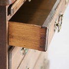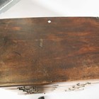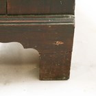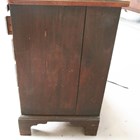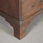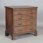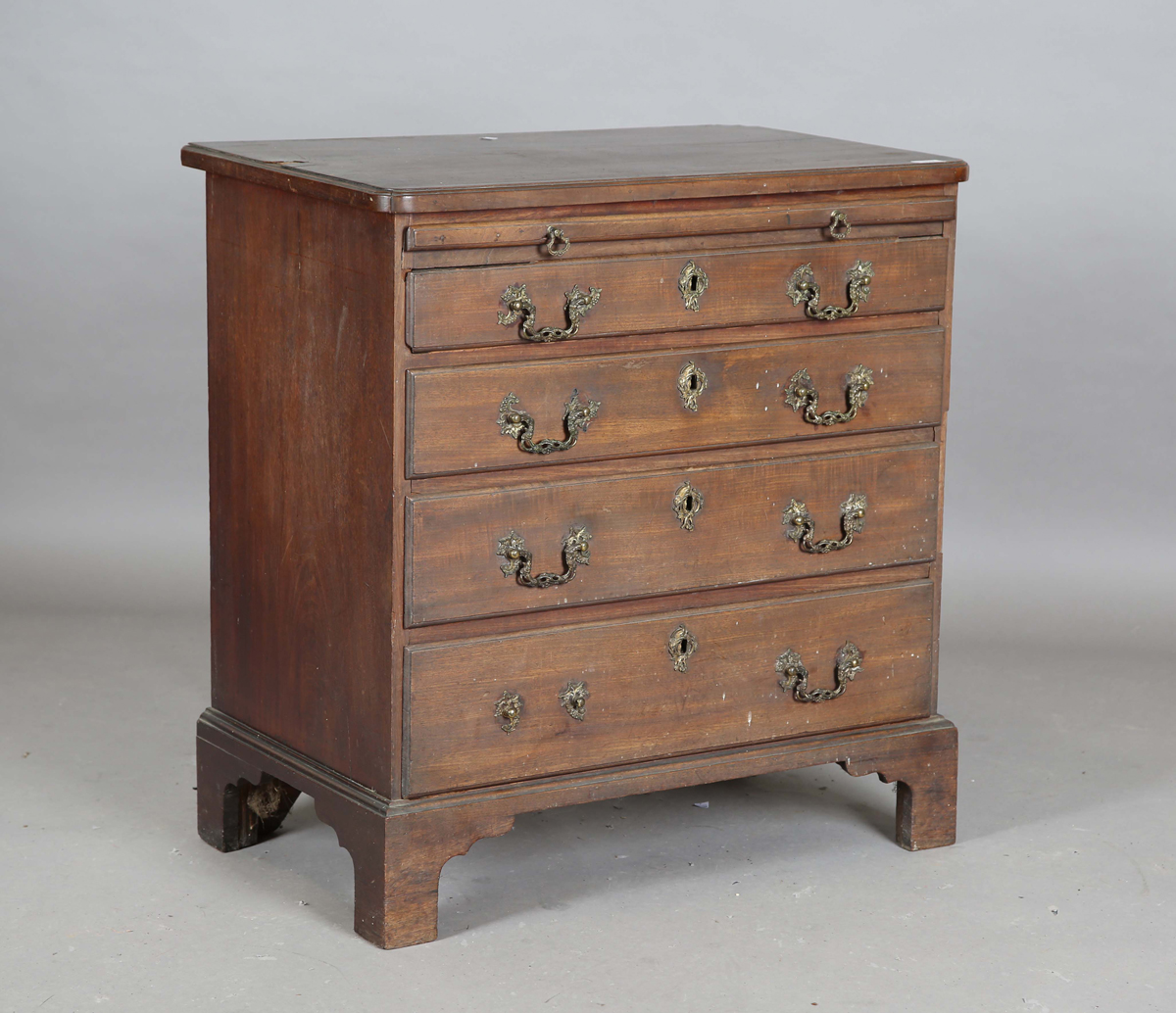 An early George III mahogany bachelor's chest of four oak-lined drawers, fitted with a brushing slide and original handles, height 84cm, width 79cm, depth 49cm (faults and lacking one handle).