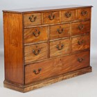 A George III mahogany bank of eleven oak-lined drawers, height 87cm, width 125cm, depth 32cm (alterations).