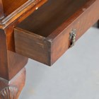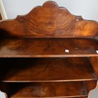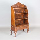 An early 20th century Queen Anne style walnut waterfall open bookcase, on cabriole legs, height 128cm, width 70cm, depth 34cm.