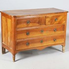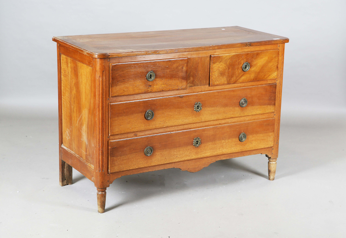 A 19th century French walnut commode, fitted with two short and two long drawers, height 85cm, width 123cm, depth 54.5cm.