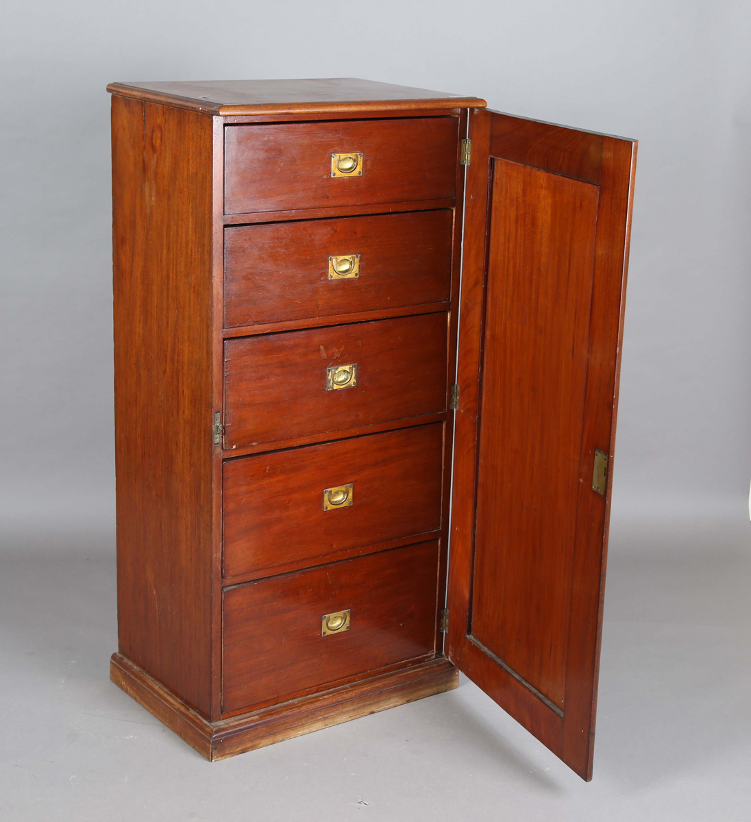 A Victorian mahogany cabinet, the single door enclosing five drawers, height 128cm, width 61cm, depth 43.5cm.