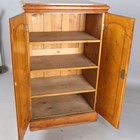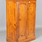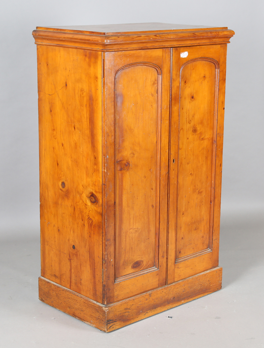 A Victorian pitch pine two-door cabinet enclosing three shelves, height 136cm, width 82cm, depth 52cm.
