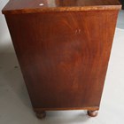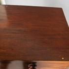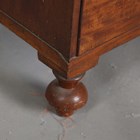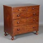 A Victorian mahogany chest of oak-lined drawers with turned handles, height 103cm, width 107cm, depth 56cm.