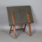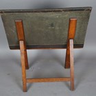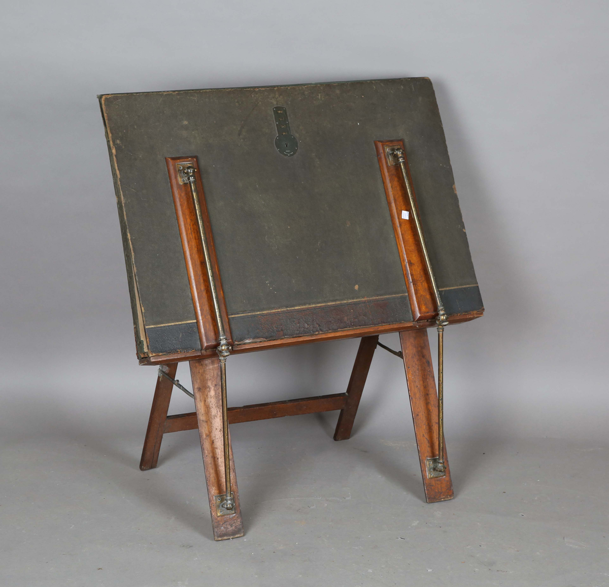 An Edwardian oak and gilt brass mounted folio stand with 'Bunyard, London Patent' stamps, height 90cm, width 82cm.