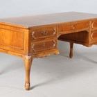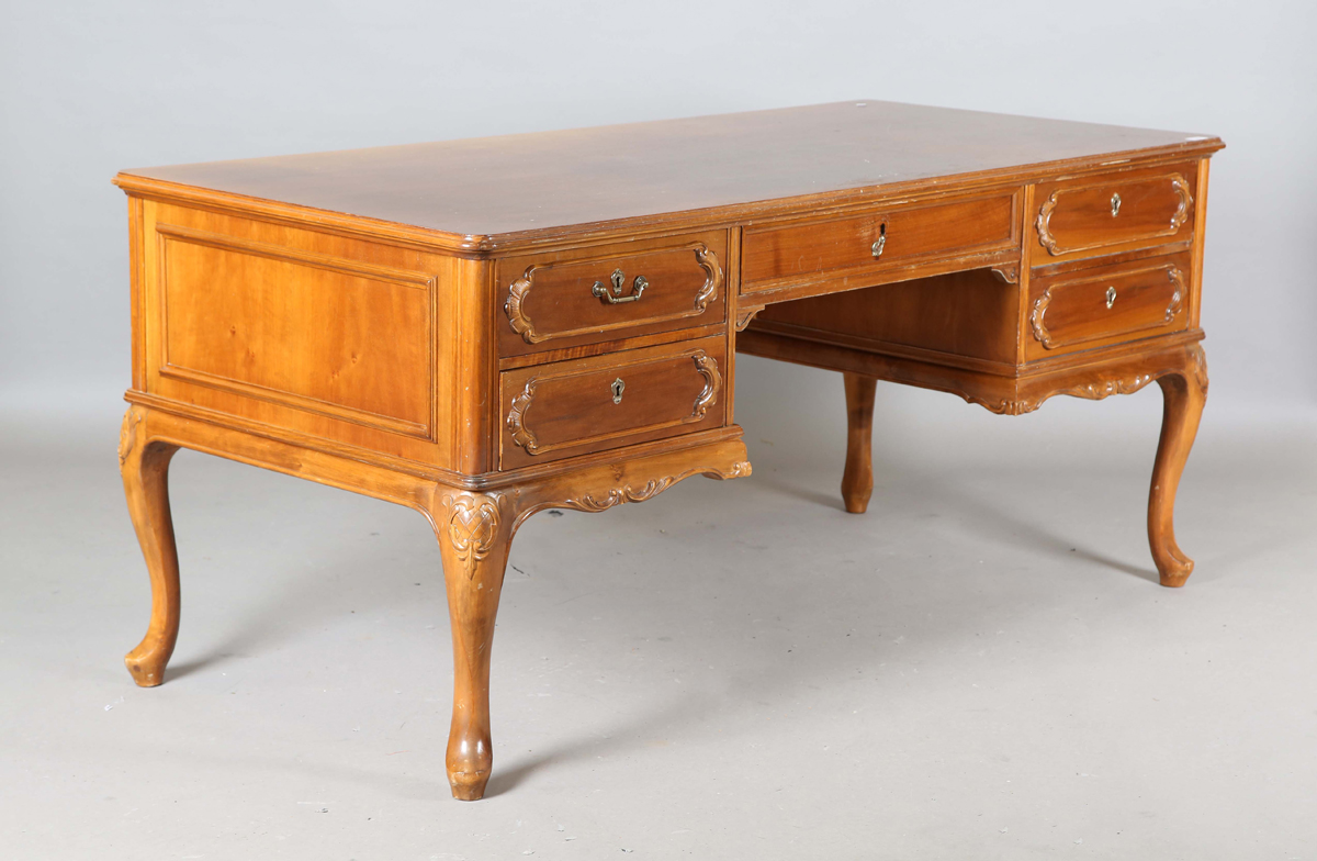 A late 20th century French walnut desk, fitted with five kneehole drawers, on cabriole legs, height 77cm, width 170cm, depth 80cm.