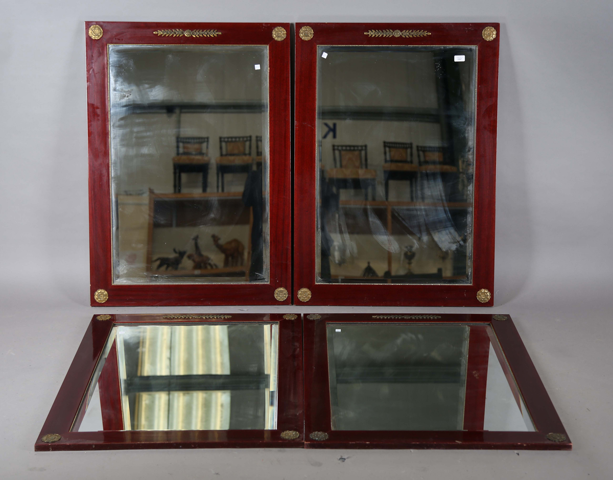 A set of four late 20th century Empire style rectangular wall mirrors with gilt metal mounts, 106cm x 76cm.
