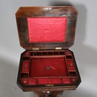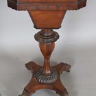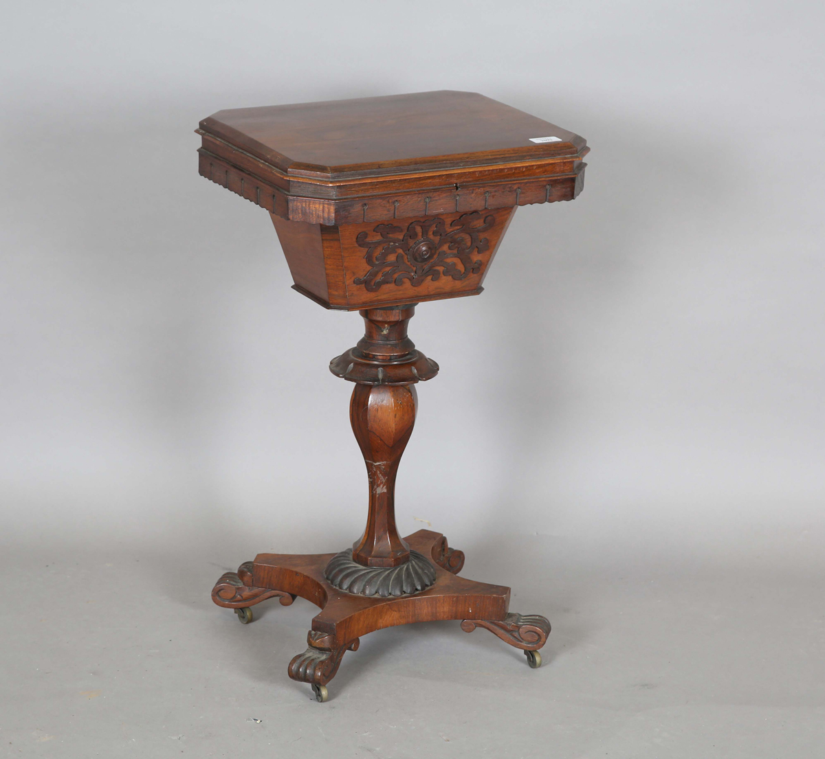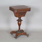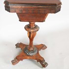 An early Victorian rosewood work table, the hinged lid revealing a silk-lined interior, height 72cm, width 44cm, depth 35cm.