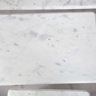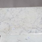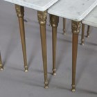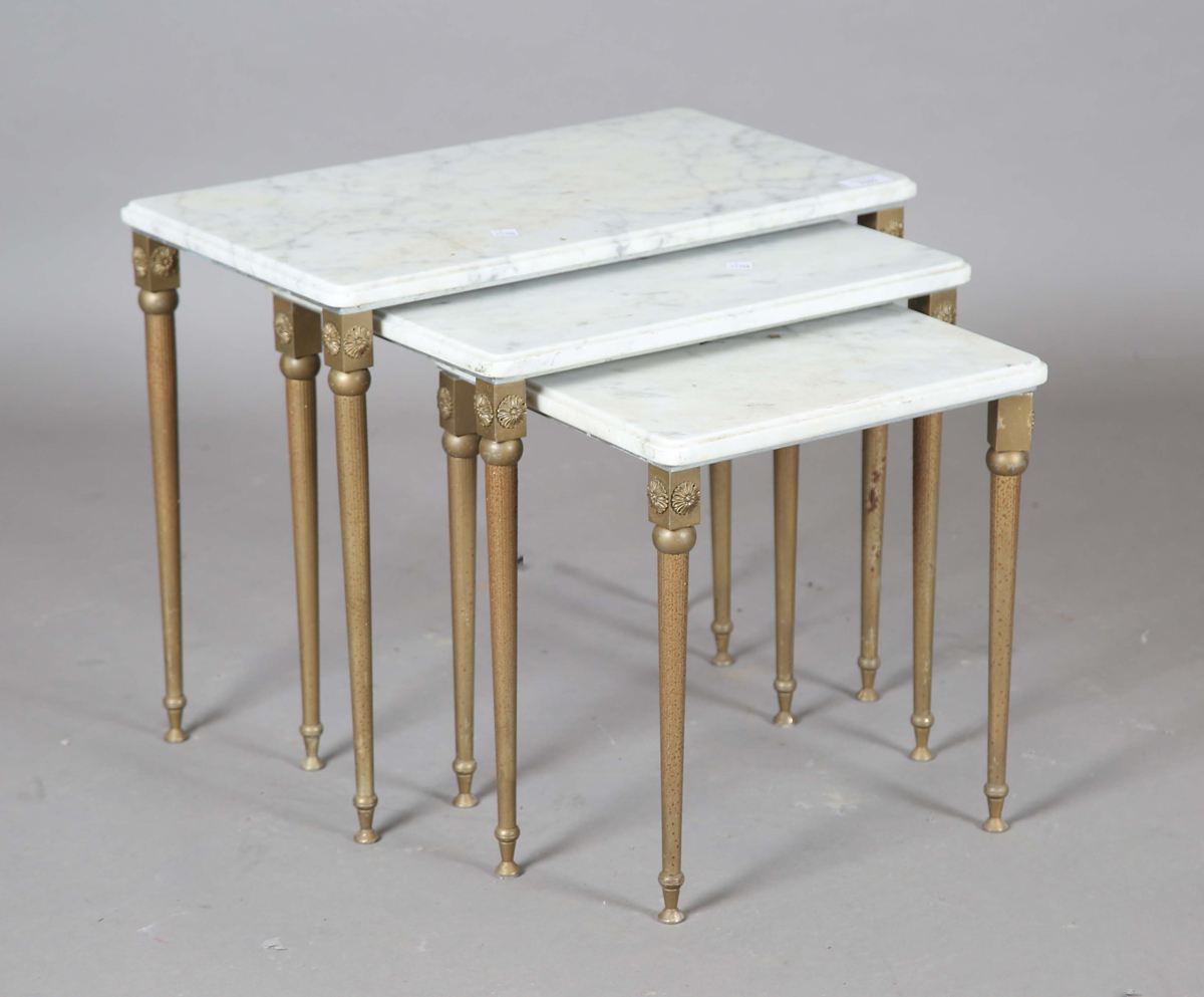 A 20th century nest of three brass occasional tables, all with white marble tops, height 41cm, width 51cm, depth 30cm.