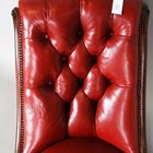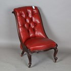 A mid-Victorian mahogany framed slipper chair, upholstered in buttoned ruby red leather, height 84cm, width 56cm.