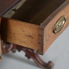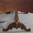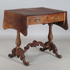 A mid-Victorian mahogany 'butterfly' sofa table, the shaped top above a single drawer, raised on a carved base, height 73cm, extended width 127cm, depth 65cm.
