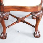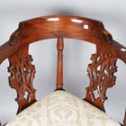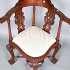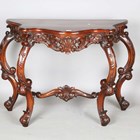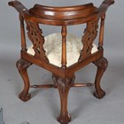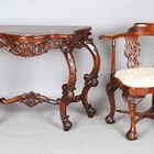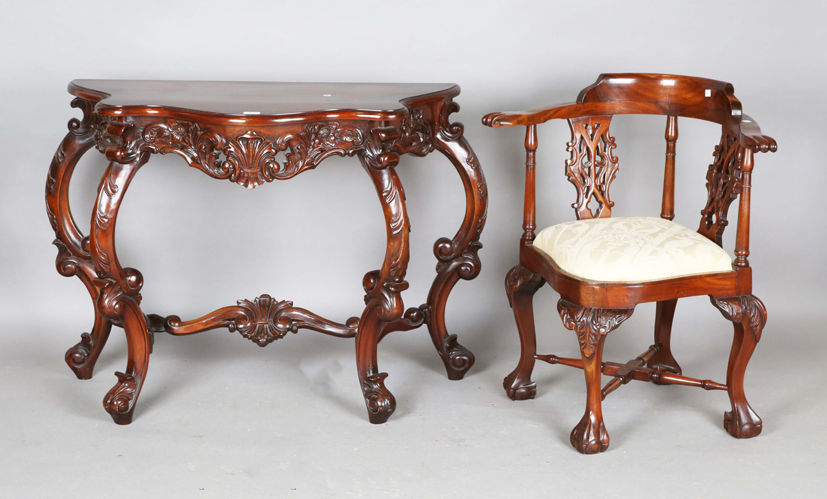A late 20th century rococo style hardwood console table, height 70cm, width 114cm, depth 46cm, together with a similar George III style corner chair, height 82cm, width 73cm.