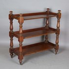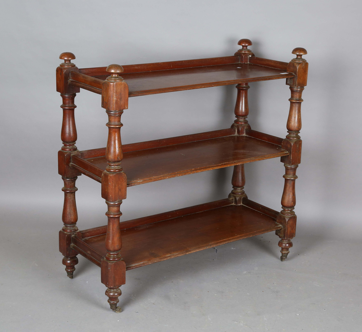 A mid-Victorian mahogany three-tier buffet, raised on turned and block supports, height 104cm, width 106cm, depth 44cm.