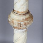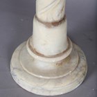 An early 20th century alabaster display pedestal, height 97cm, width 21cm, together with a similar pedestal with wrythen fluted stem, height 101cm, width 24cm.
