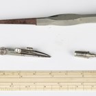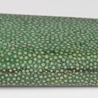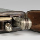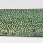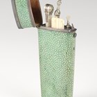 A late George III silver mounted shagreen drawing instrument case, the hinged lid enclosing various nickel instruments, length 13.5cm.