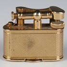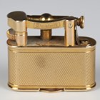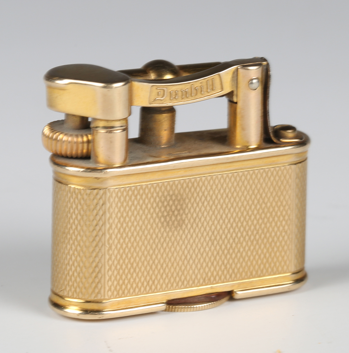 A 9ct gold Dunhill pocket lighter, Patent No. 143752, London 1928, width 3.7cm, weight 32g.