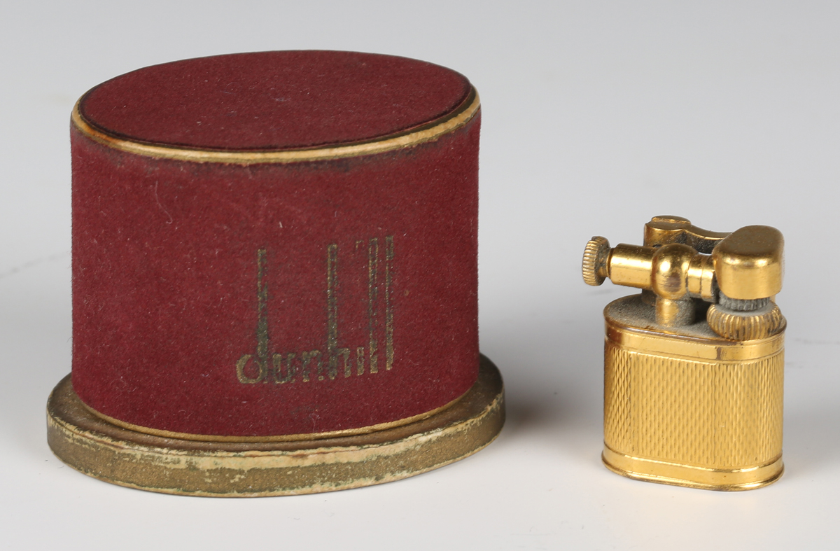 A Dunhill gilt metal miniature pocket lighter, height 2.2cm, with the original oval Dunhill case.